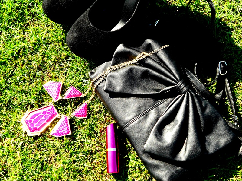 | Shoes (Aldo: http://www.aldoshoes.com/za/) Necklace (DIVA: www.diva.net.au/) Bag (Mr Price: www.mrprice.co.za/) Lipstick (Rimmel: www.rimmellondon.com/) KISSES* |