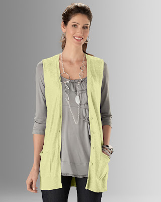 Go BRIGHT. Pair a bright sleeveless sweater with tights in the same shade or a pair of dark denim jeans. You can even add a black skirt that stops an inch or three above your knee, dark boots and a white button-down shirt with French cuffs and collar under the sleeveless sweater for an updated, but classy, look.