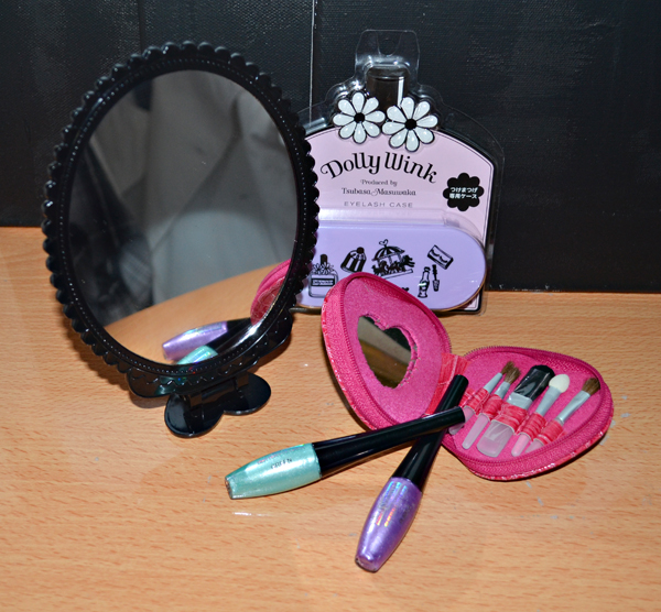 2 Coloured liquid liners, a mini brush set (SASS DIVA), false lashes & a mirror.