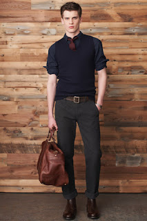 However, this line is anything but embarrassing. Their menswear collection for Fall 2011 is just fabulous. The design team have taking heavy, masculine fabrics and put them in a slimmer silhouette. I love it. They have moved away from their chic work-wear appeal, and onto this stylish, masculine man. Very sexy stuff.