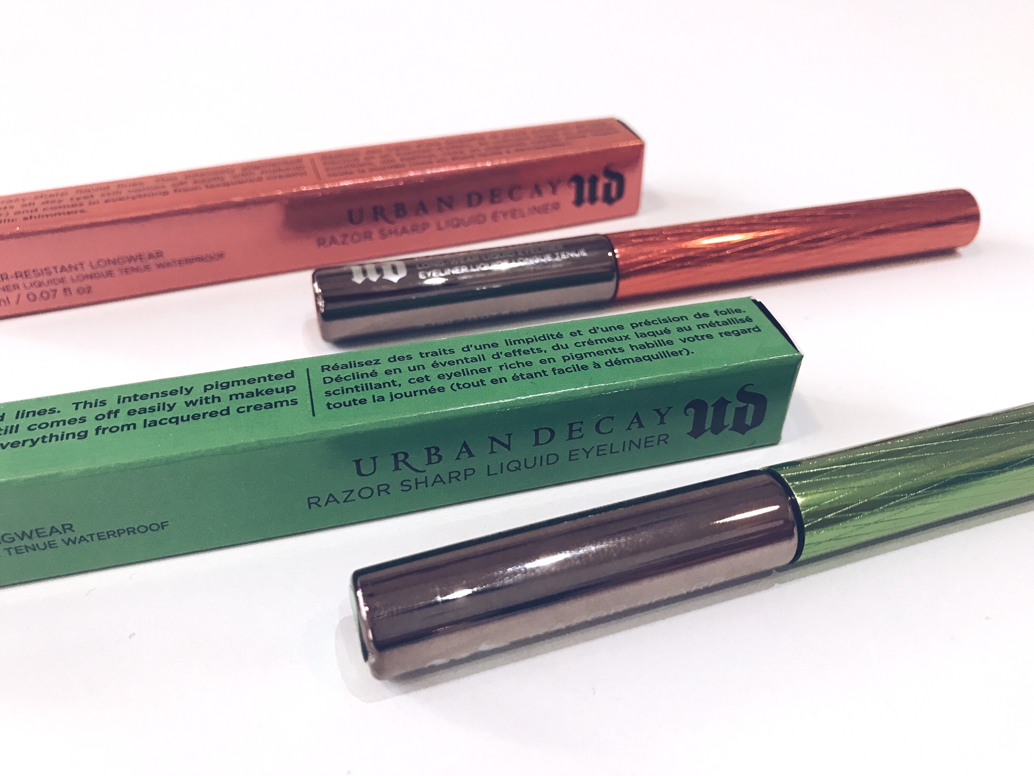 Also in my Urban Decay package were two vibrantly colored Razor Sharp Liquid Eyeliners. The coral shade is called “Fireball”, & the green shade is called “KUSH” because DUH! There are a total of 20 shades made up of bright bold colours, & your standard black, brown etc. This product is very much a longwear eyeliner. I had tested it out, & it lasted hours & hours with no fade in colour or rubbing off. I think that these would make for the perfect stocking filler for make-up junkies like me. Or you could just buy it for yourself, because “Why not?”.