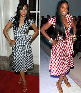 Amerie and Foxy Brown in plaid wraps by DvF.