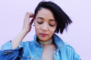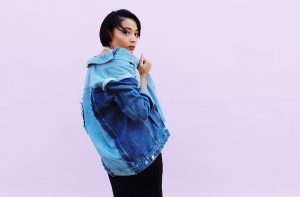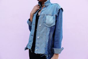 Love the black top with denim blue jacket.